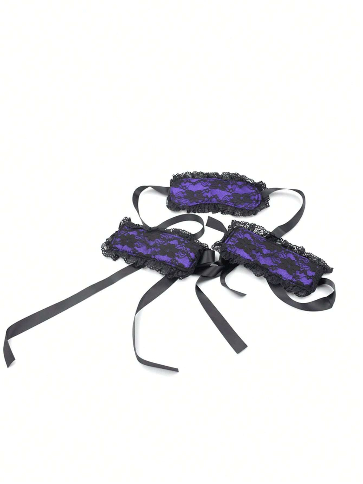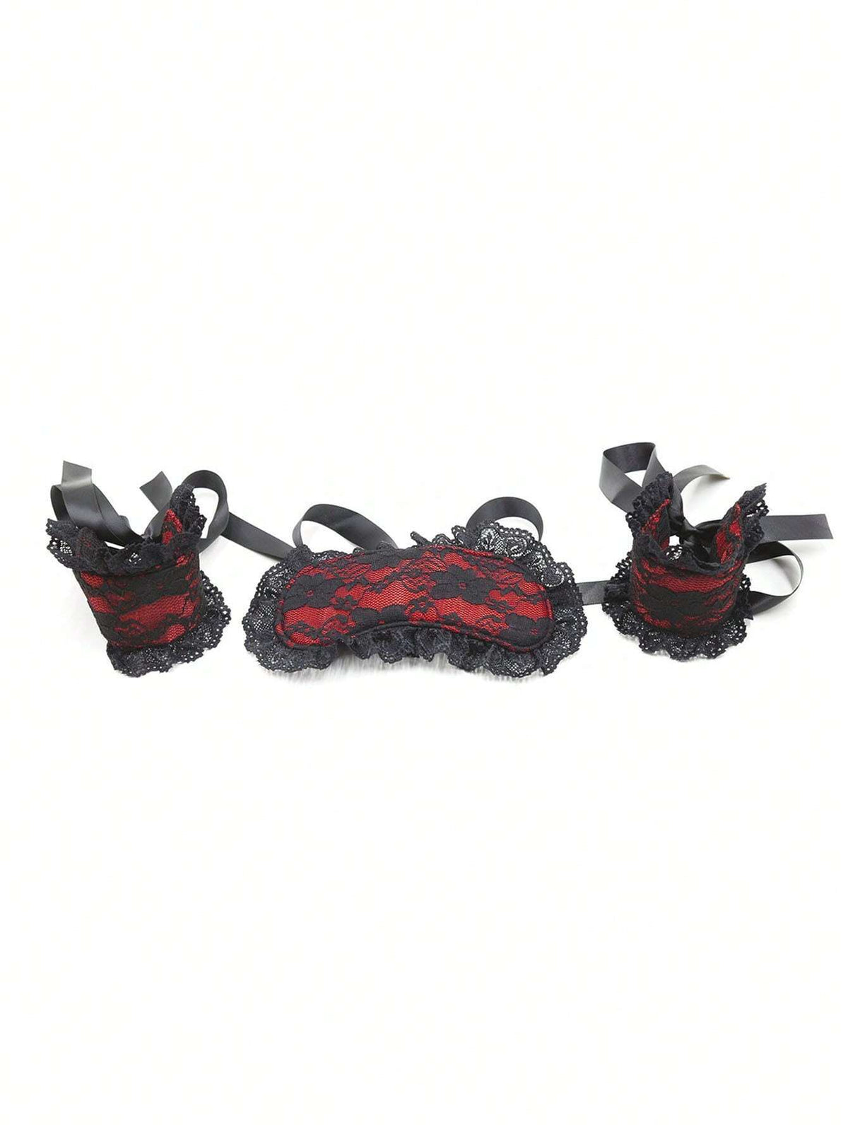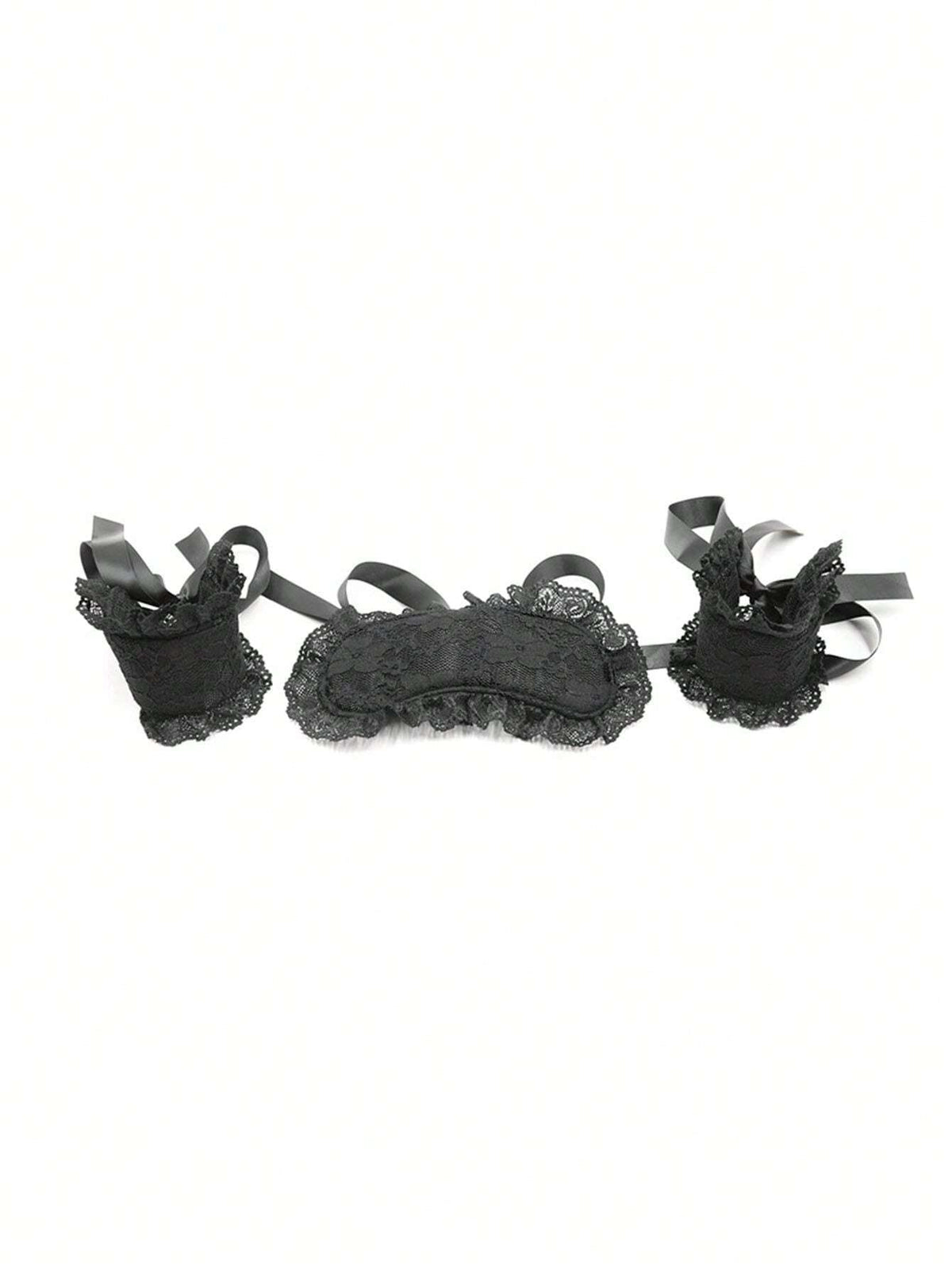 1set Fashionable New Lace Eye Mask & Handcuffs Set, 3pcs Lace Costume Set