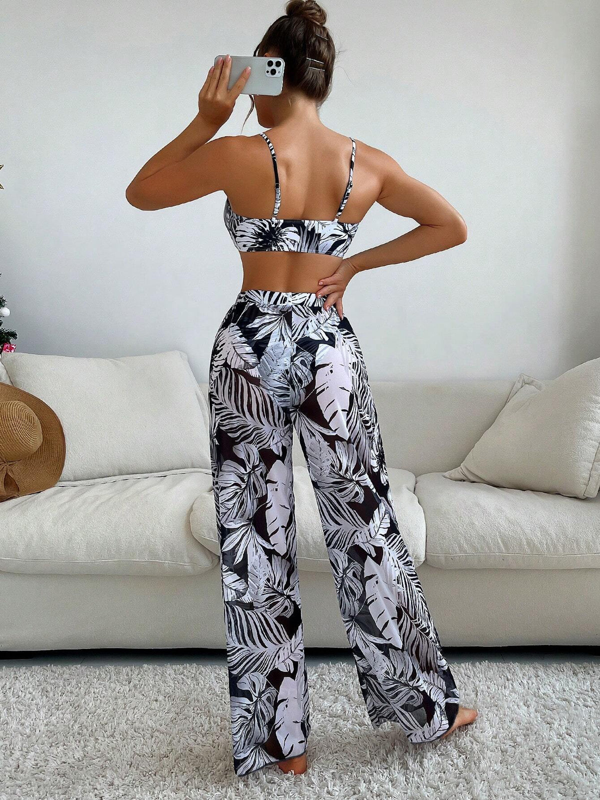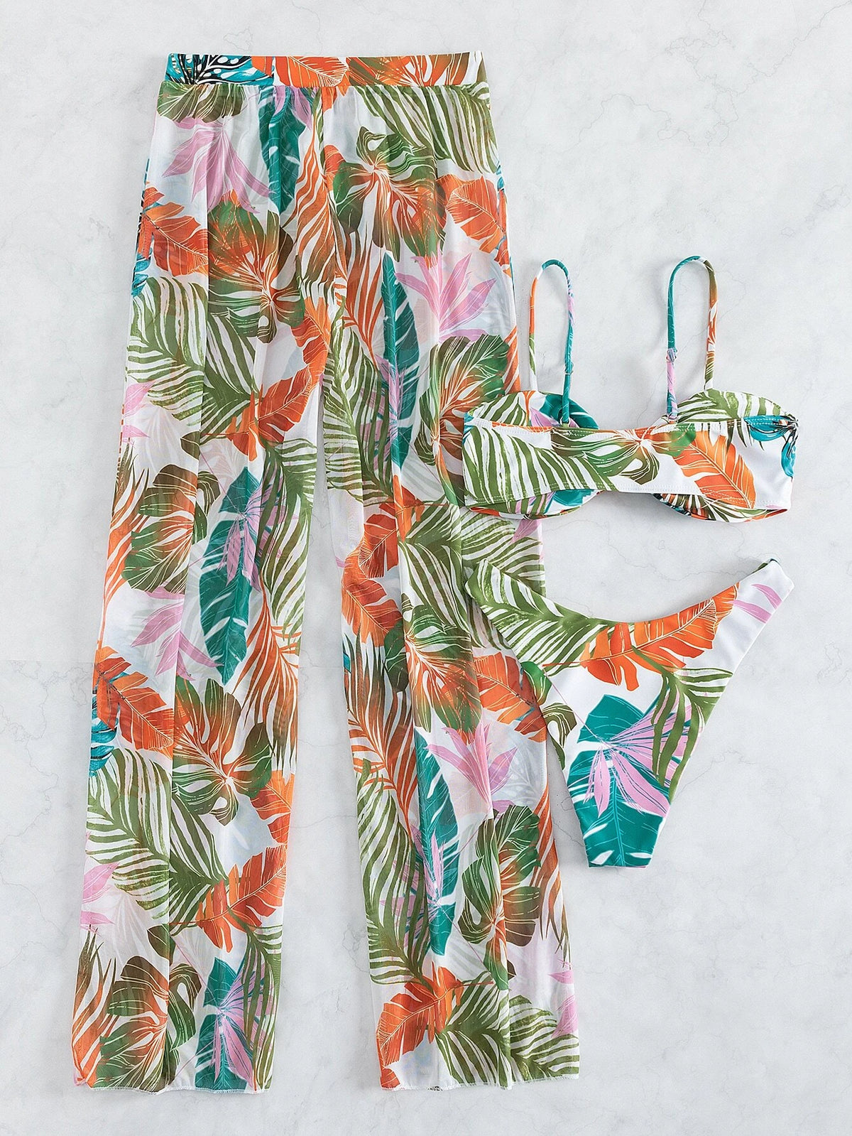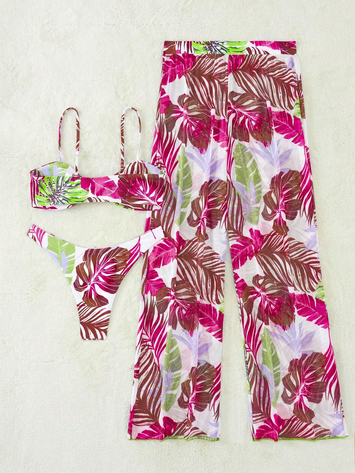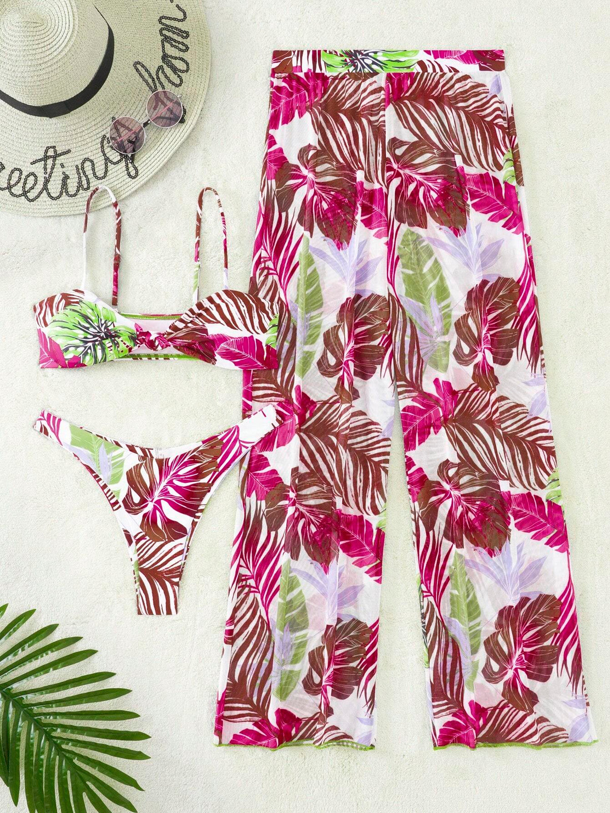 Inform when this item available 3pcs Tropical Print High Cut Bikini Swimsuit With Cover Up