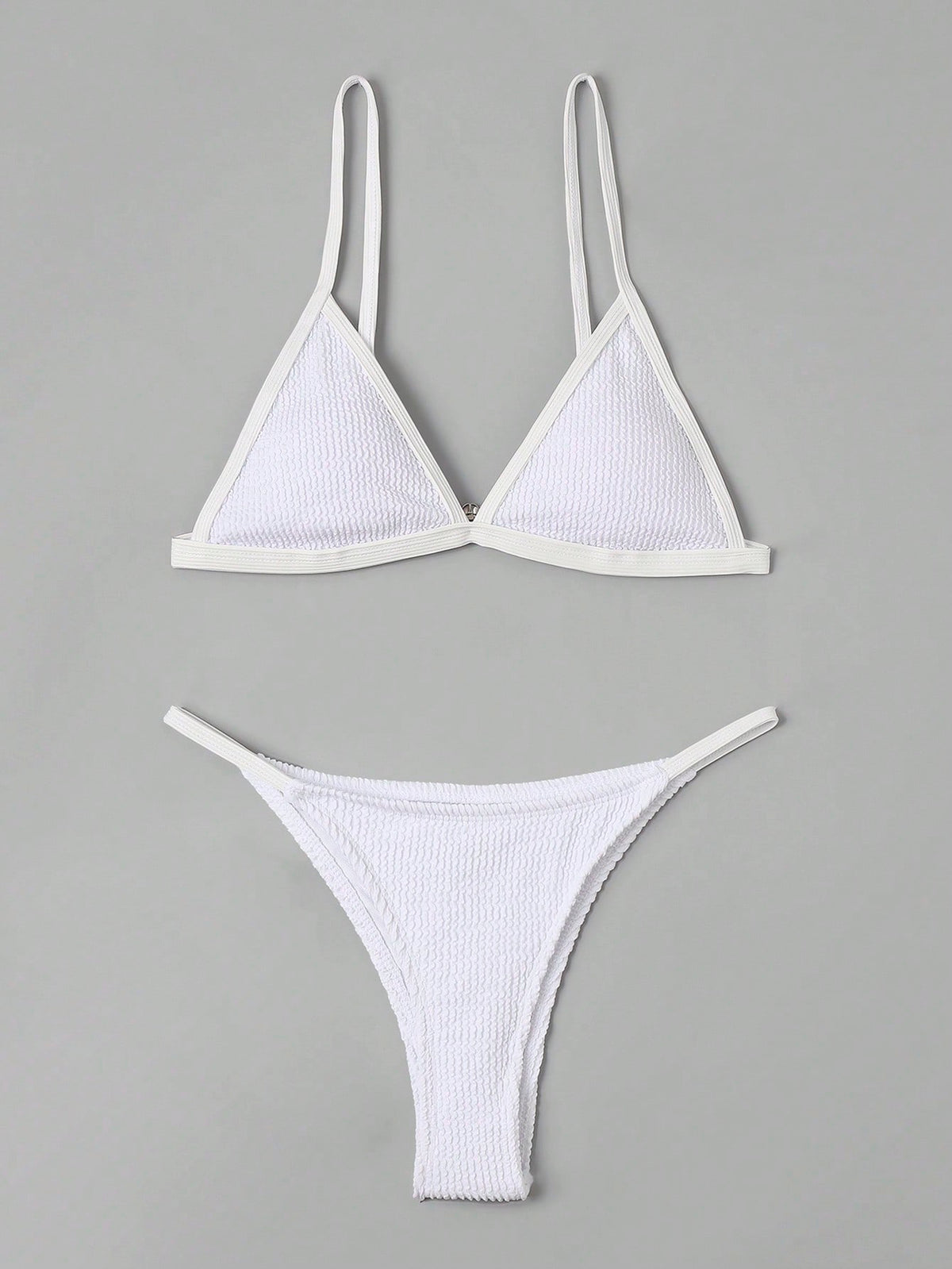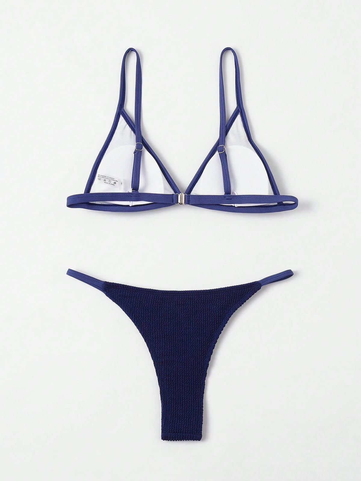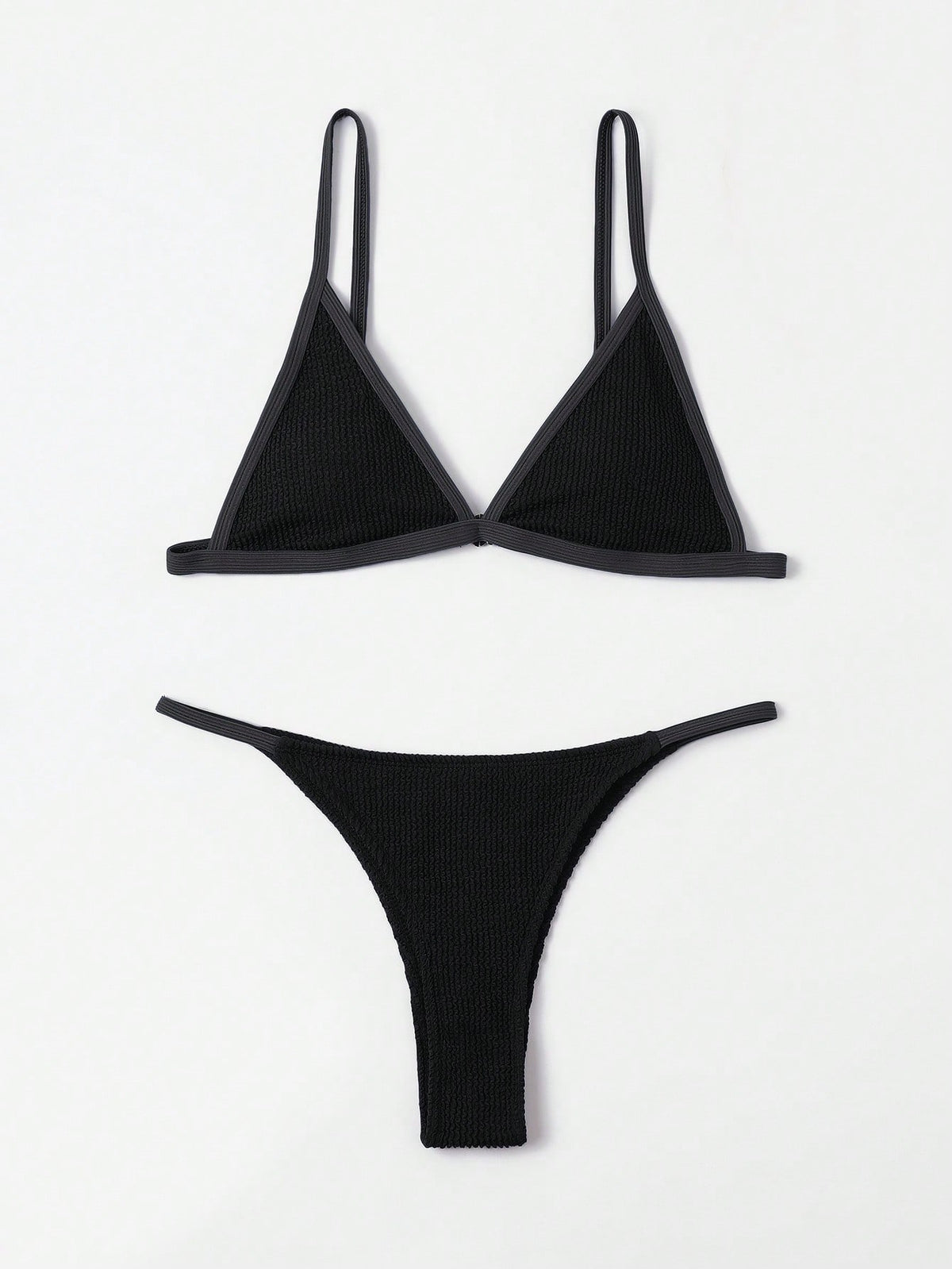 Inform when this item available Contrast Binding Triangle Thong Bikini Swimsuit