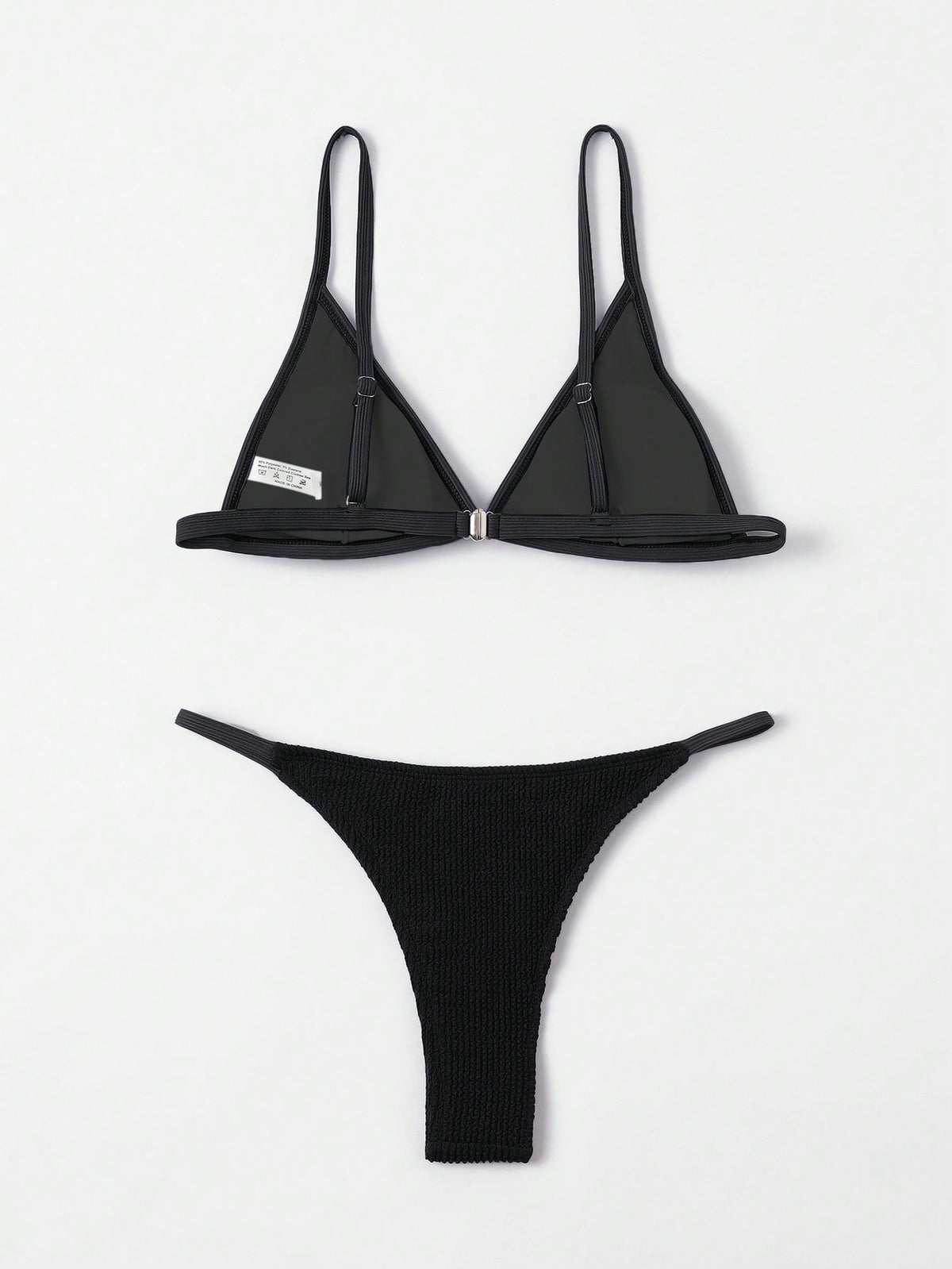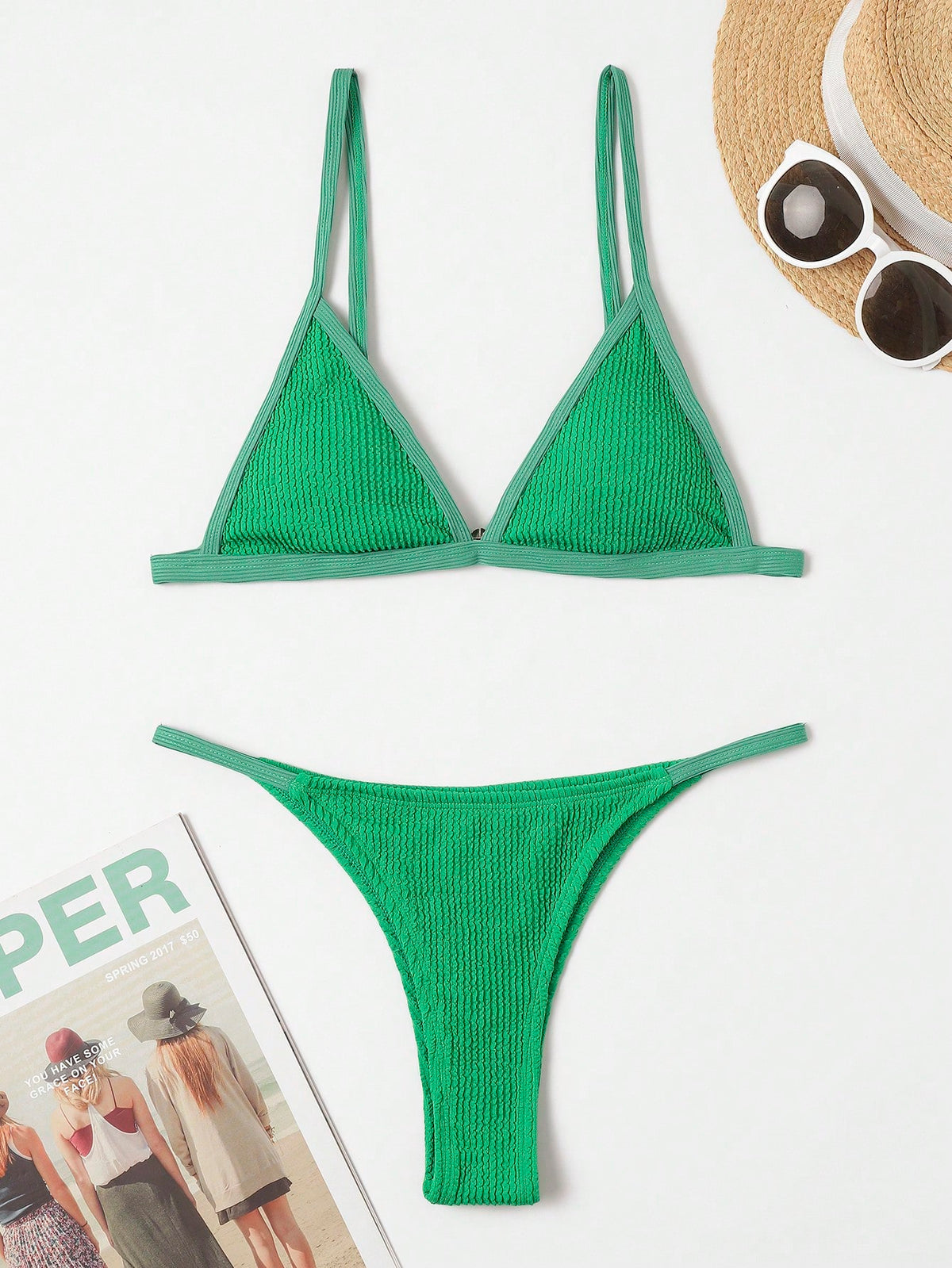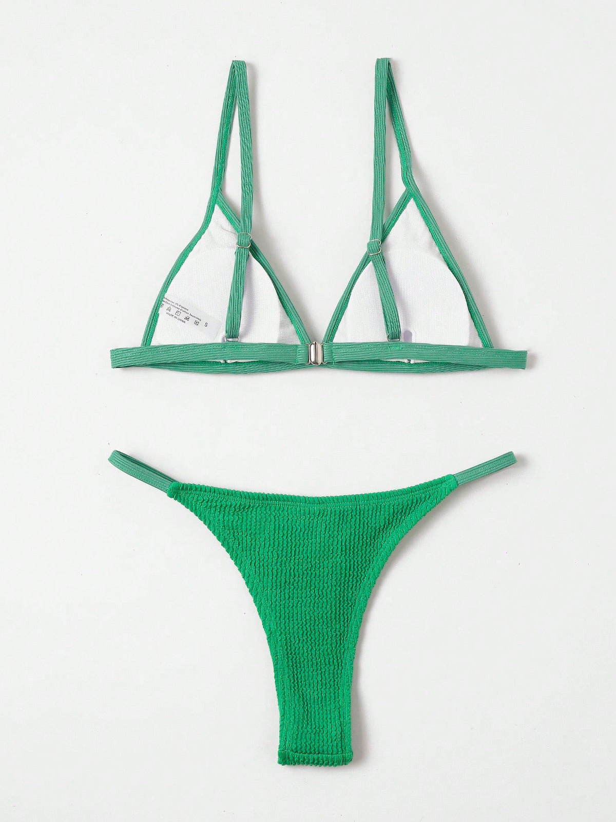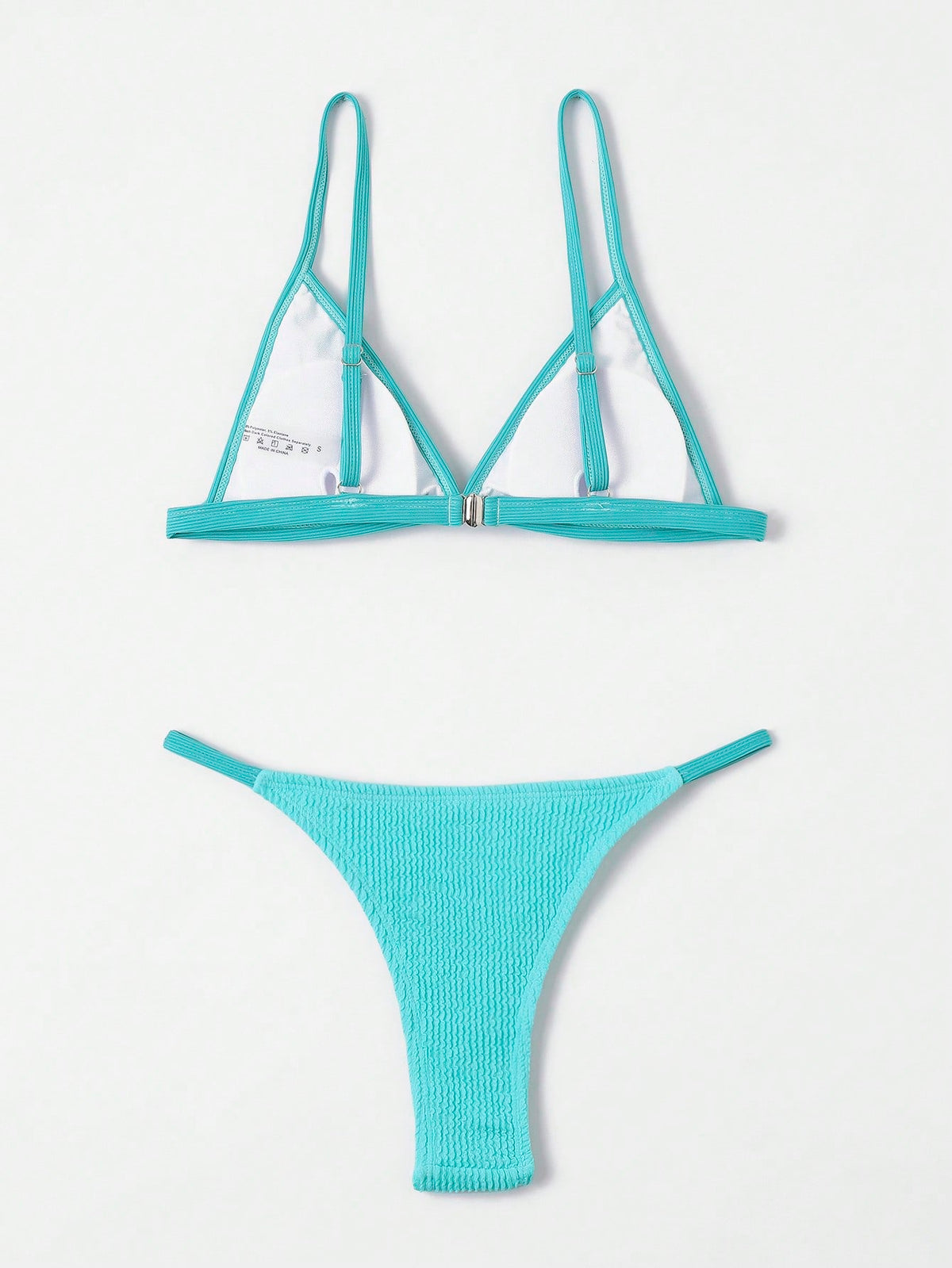 Inform when this item available Contrast Binding Triangle Thong Bikini Swimsuit