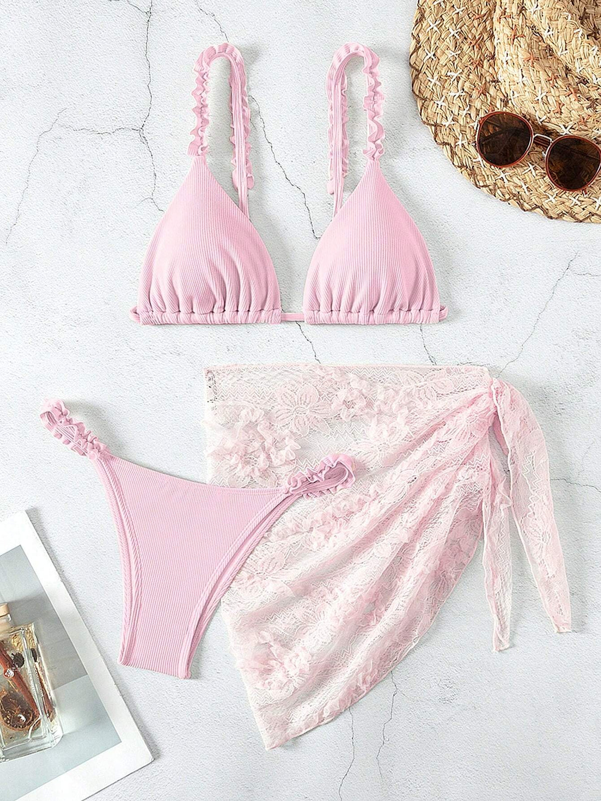 Inform when this item available Mod Summer Beach Women's Solid Color Frilled Sexy Bikini Set For Vacation