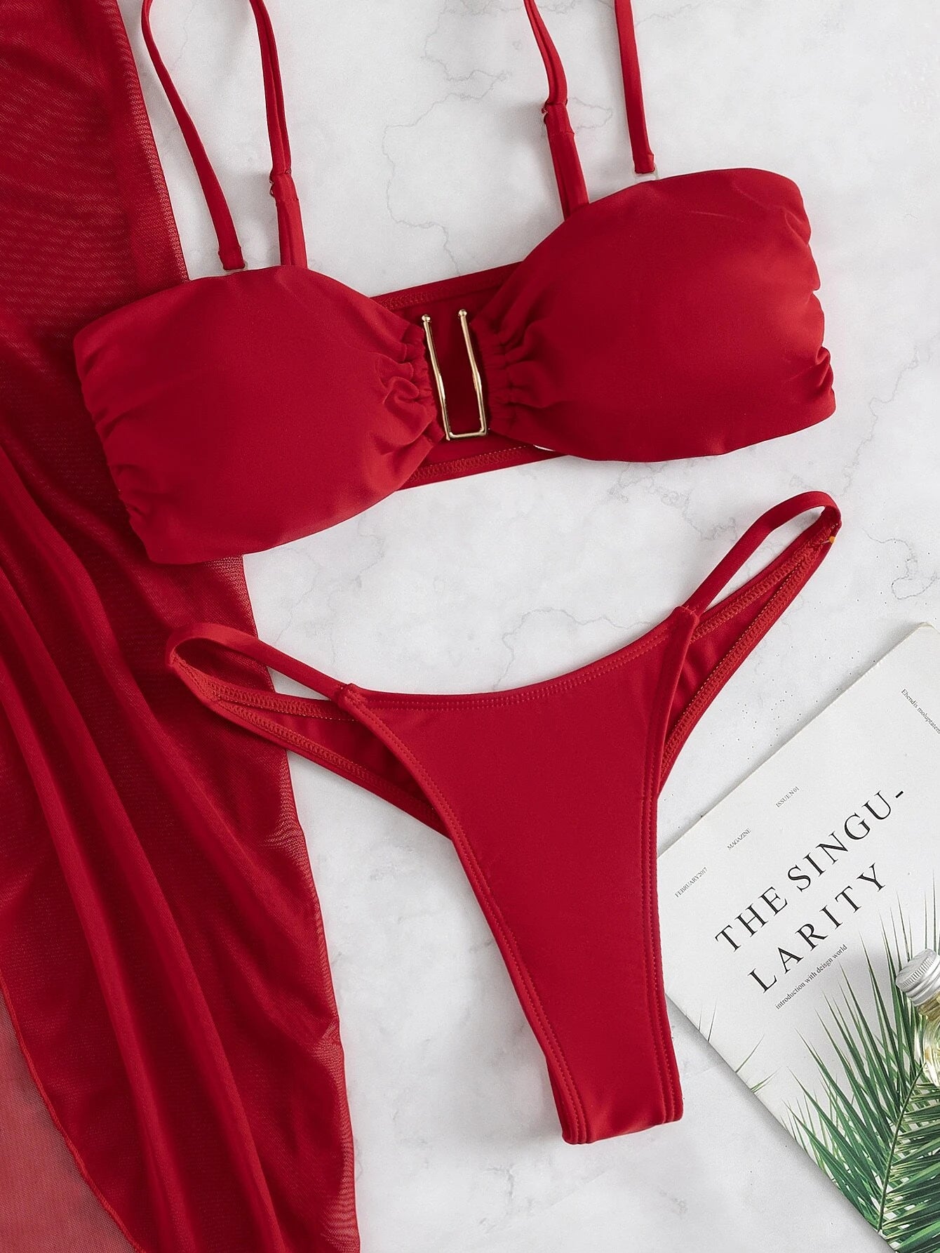 Inform when this item available Swim 3pack Solid V Wired Bikini Swimsuit & Twist Beach Skirt