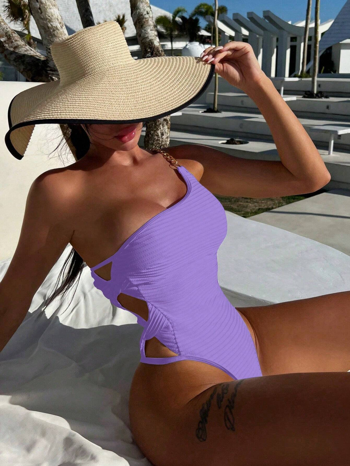 Inform when this item available SXY Summer Beach Women's One-Shoulder Cutout Monokini Swimsuit