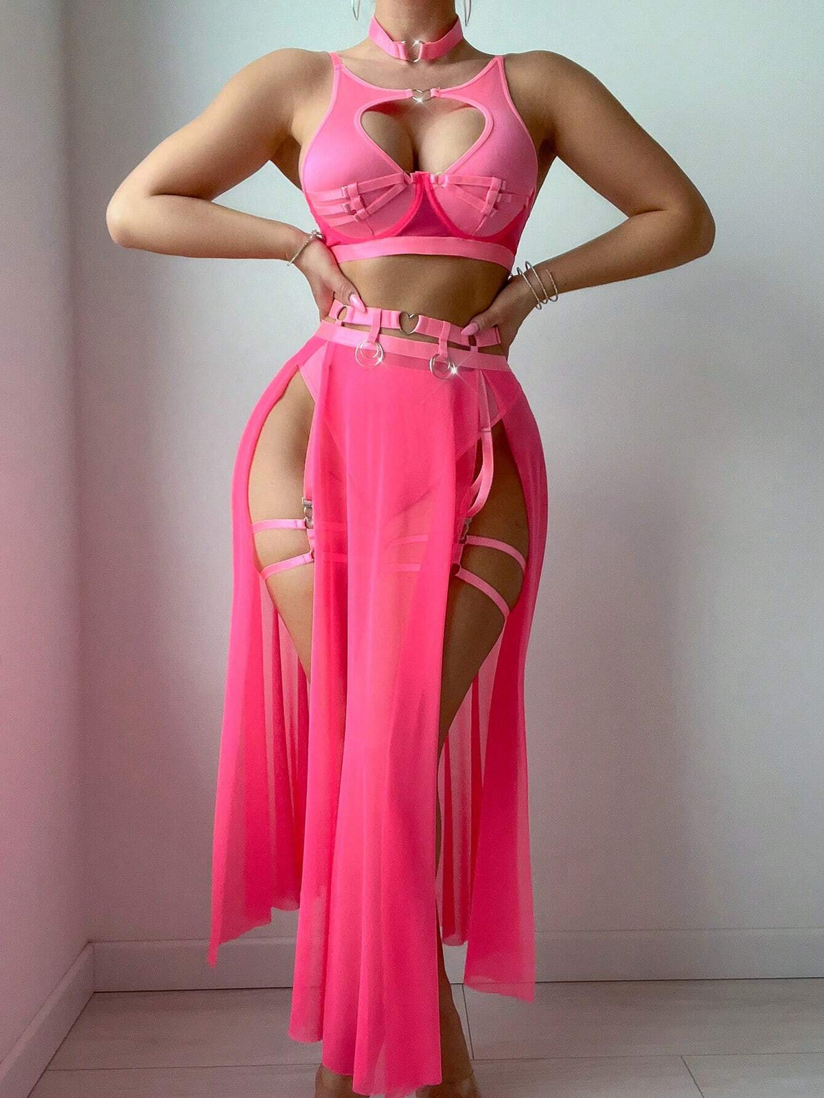 Inform when this item available Women\ Strappy Hollow Out Round Ring Detail Sexy Lingerie Set