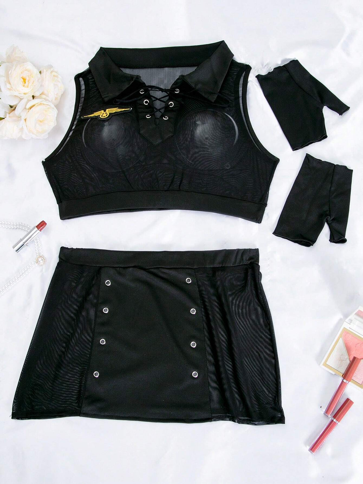 Inform when this item available Women Transparent Mesh Sexy Lingerie Costume Pilot Outfit
