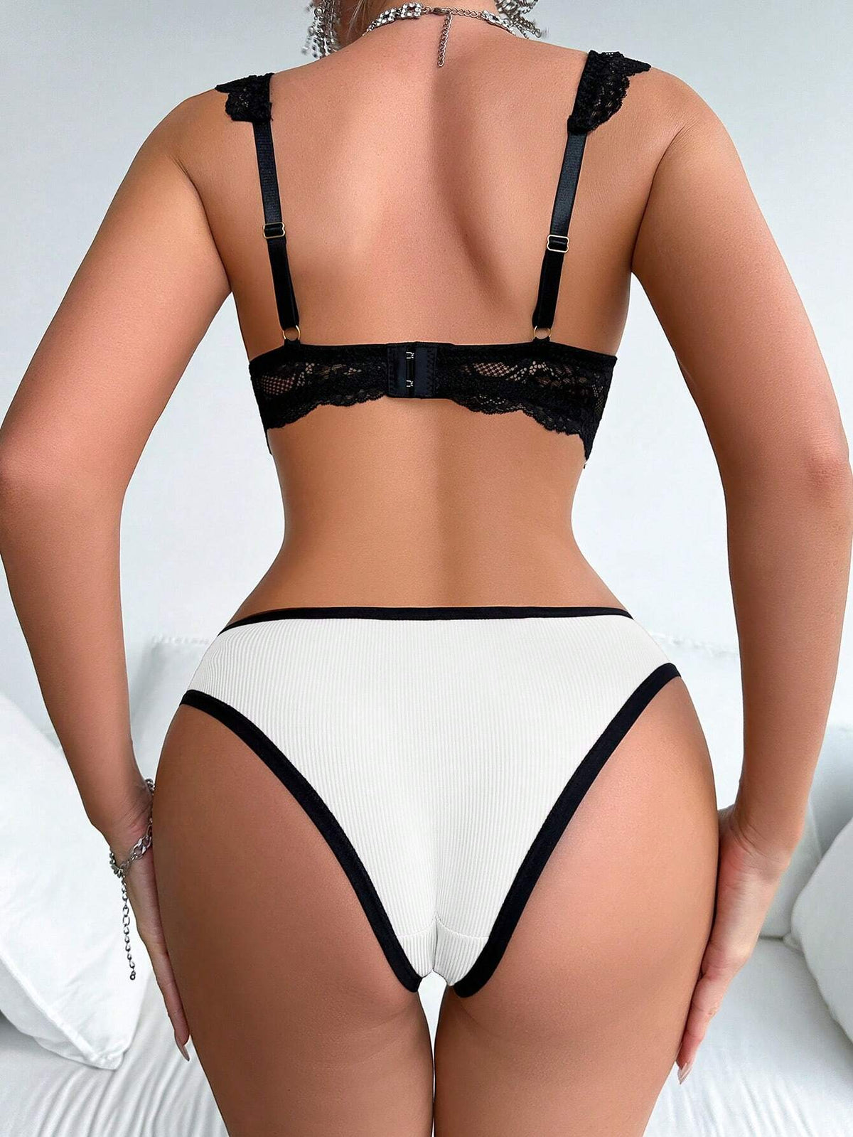 Inform when this item available Casual Lace Spliced Women's Underwear Set With Underwire Bra