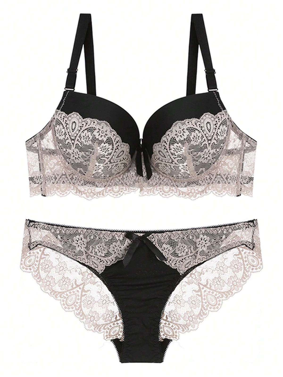 Inform when this item available Fashionable Lace Color-Blocking Triangle Panties And Bra Set