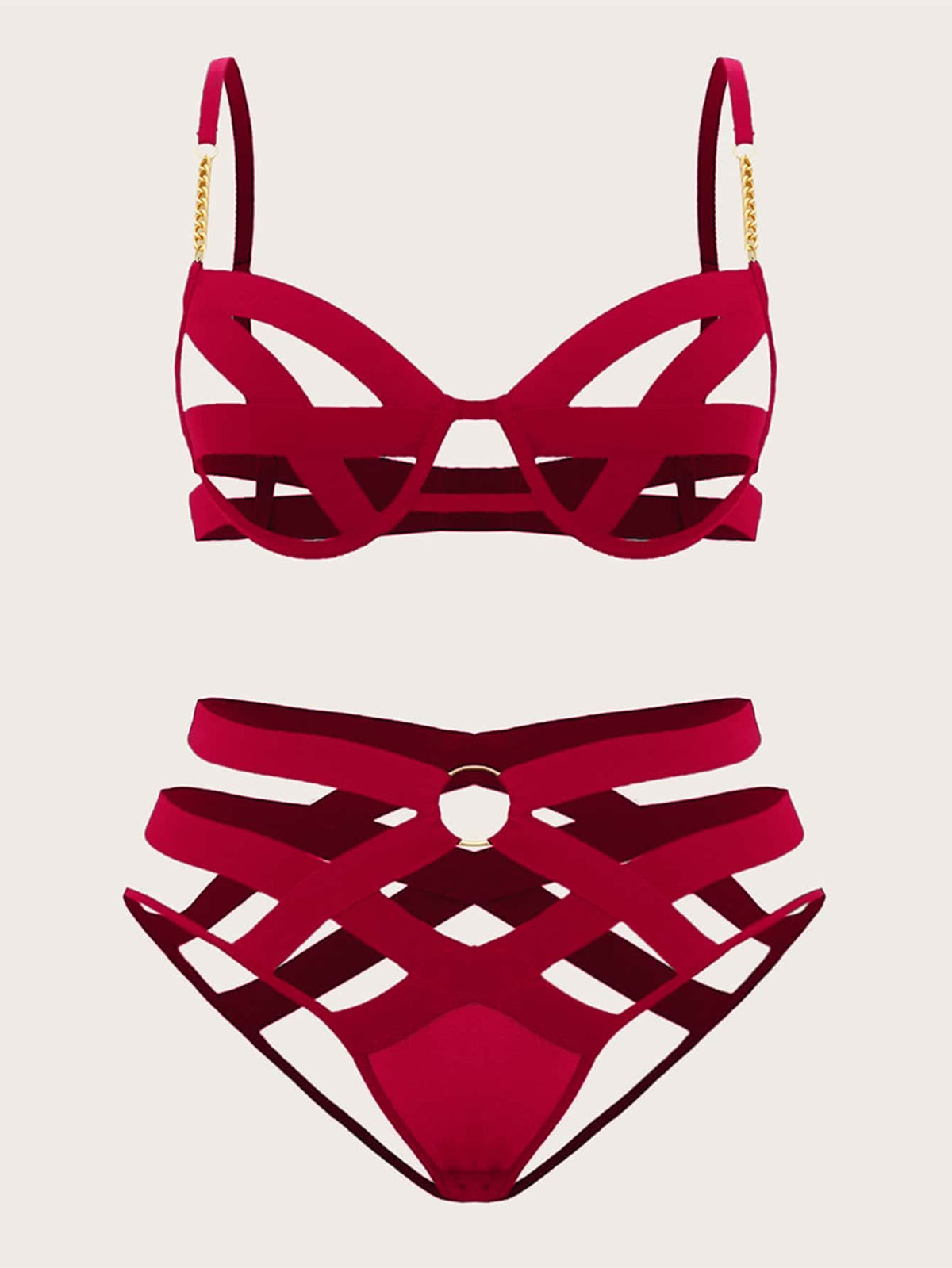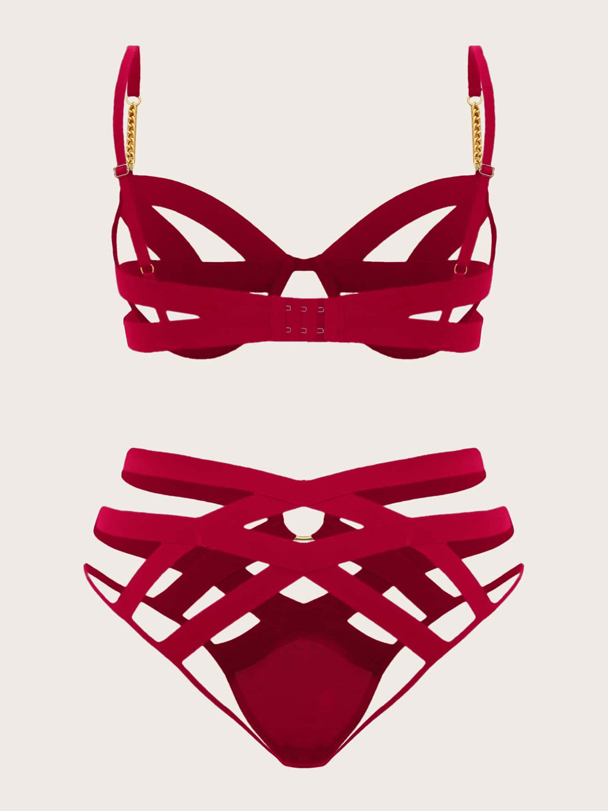 Inform when this item available Plus O-ring Cut Out Chain Detail Underwire Lingerie Set