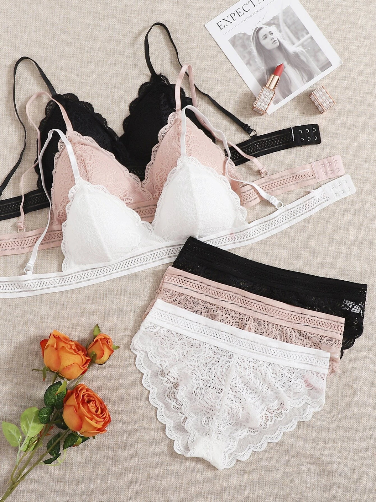 Underwear&Sleepwear Basics 3sets Floral Lace Bra & Panty Lingerie Set