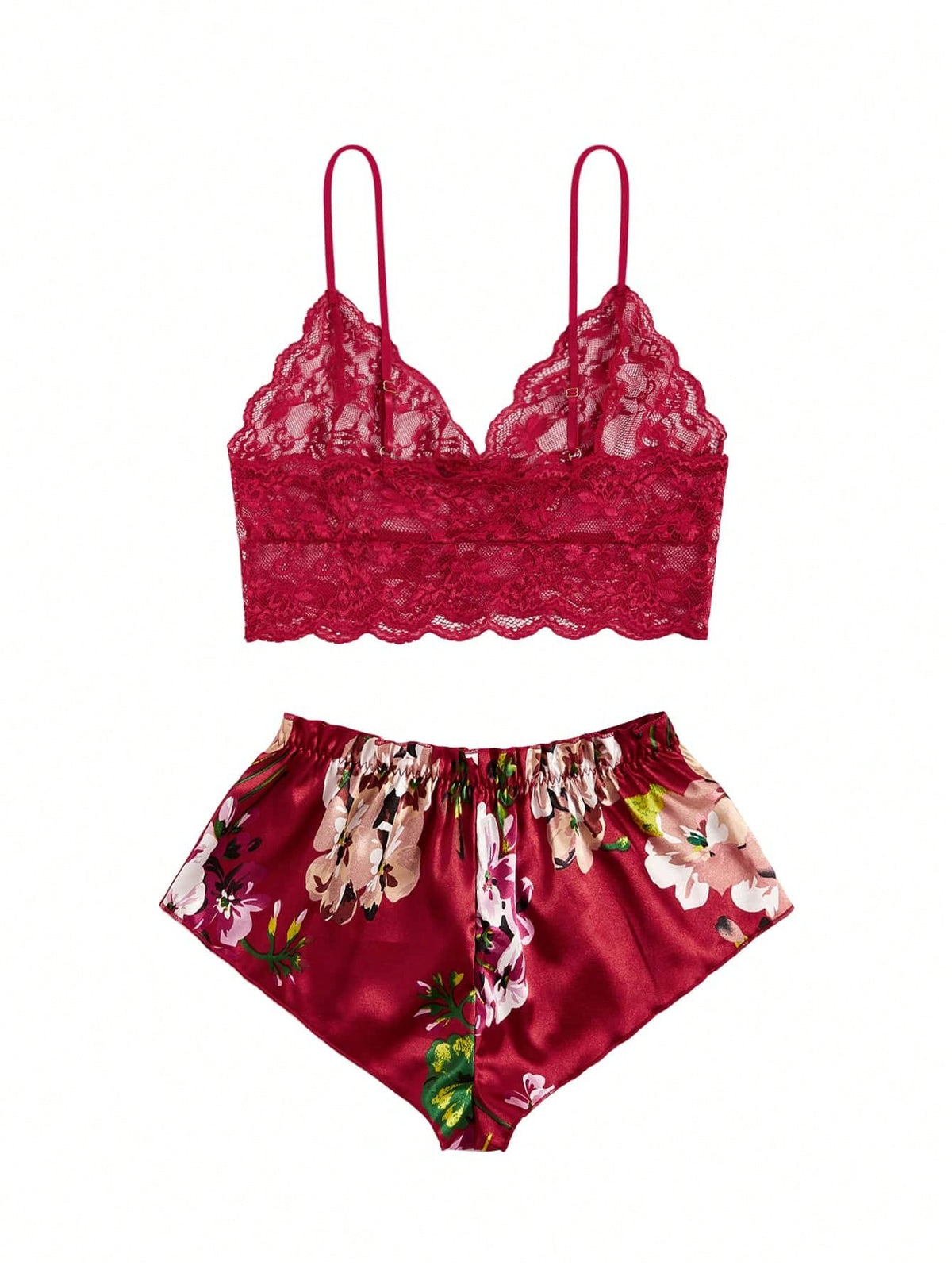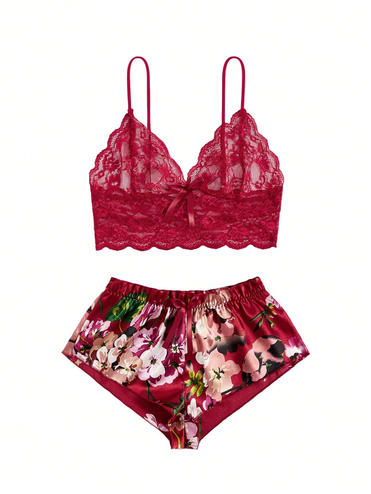 Inform when this item available Floral Lace Bralette With Floral Shorts