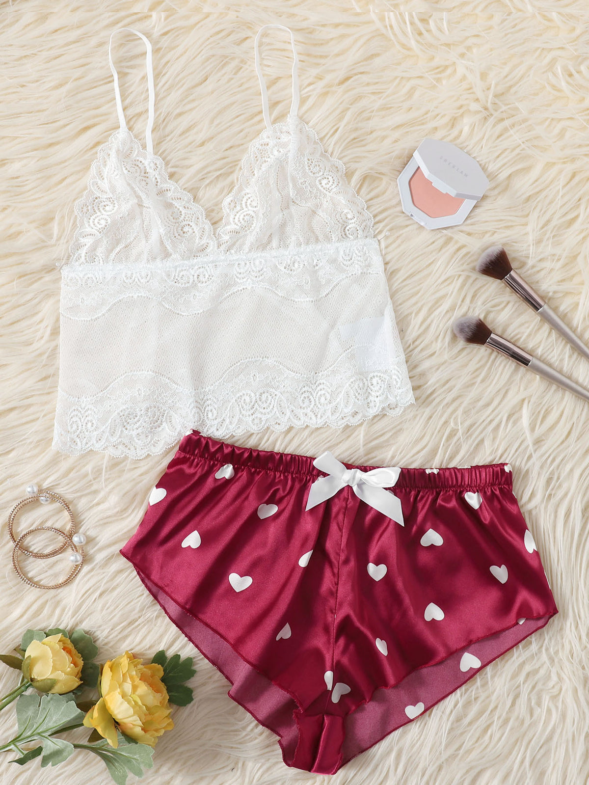 Inform when this item available Floral Lace Bralette With Heart Print Shorts