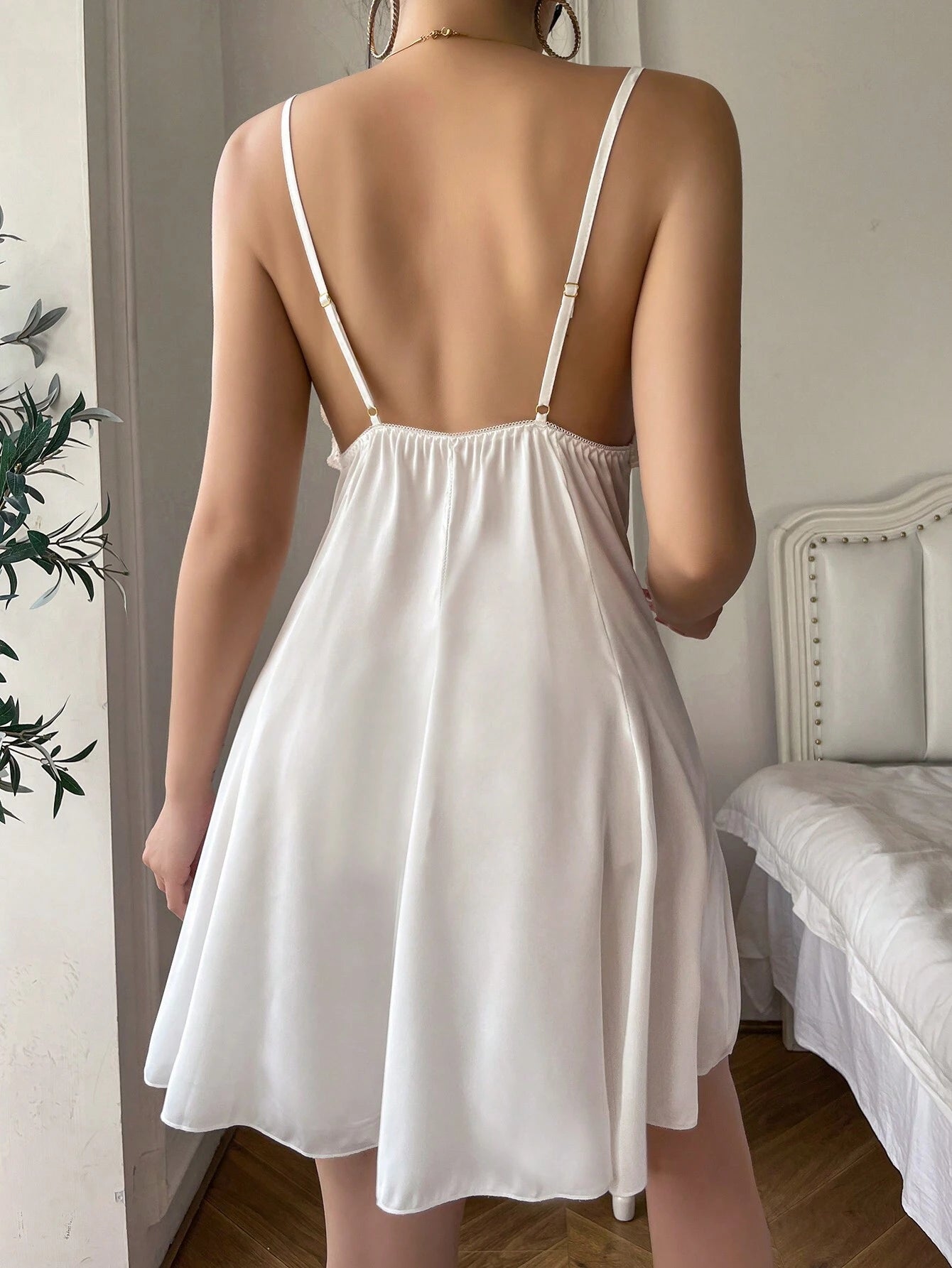 Inform when this item available Lace Panel Bowknot Decorated Pajamas