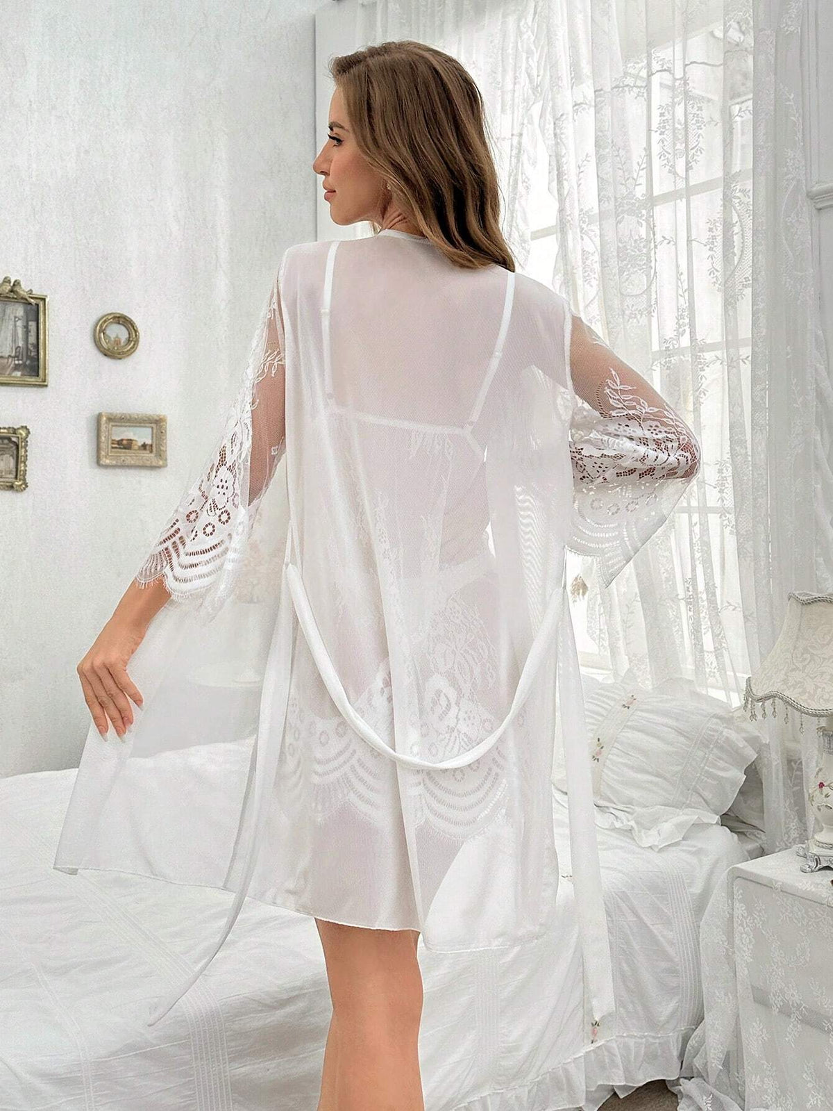 Inform when this item available Ladies' Sexy Lace & Mesh Perspective Robe And Strap Dress Set