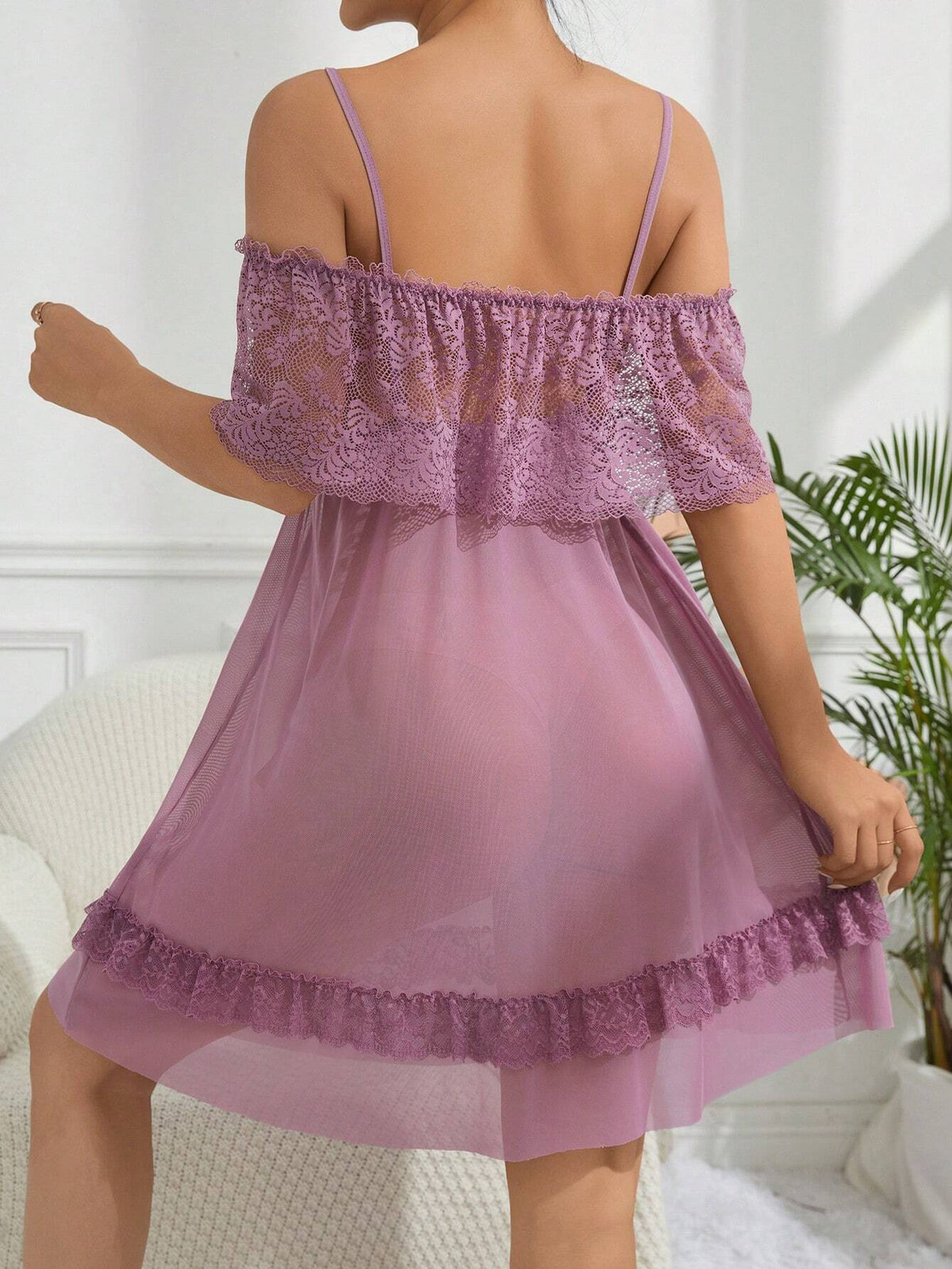Inform when this item available Women's Lace Patchwork Off Shoulder Nightgown