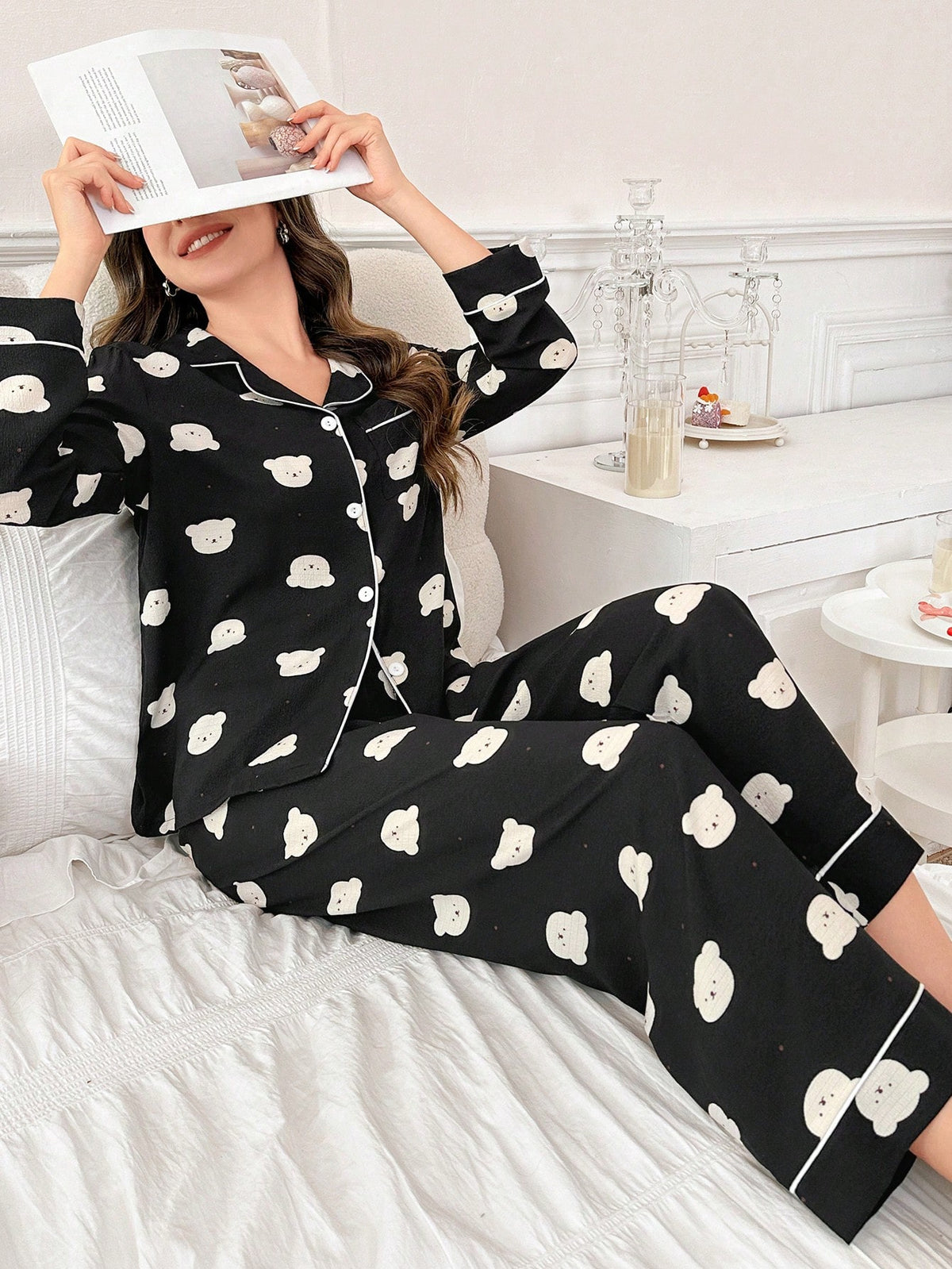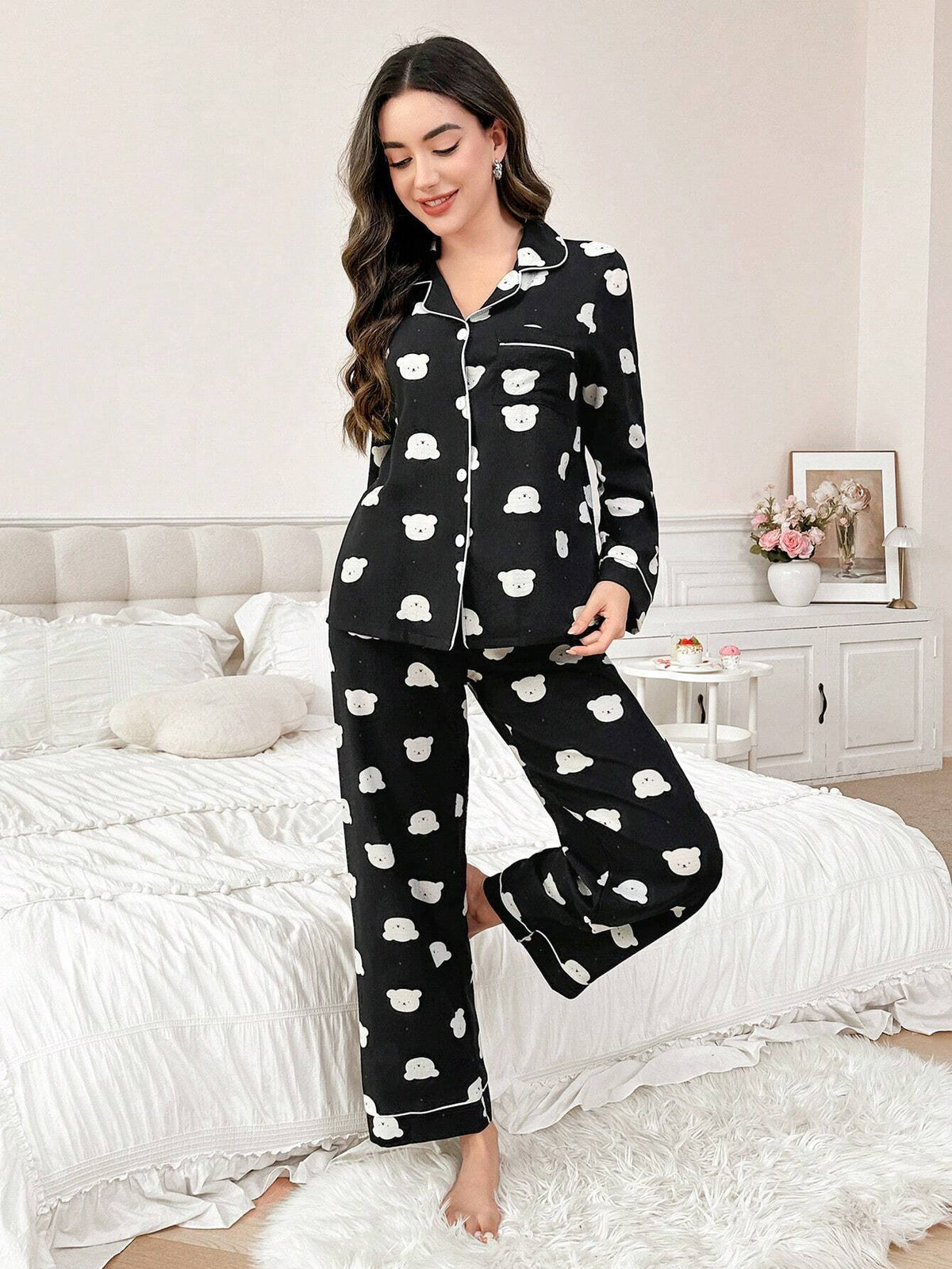 Inform when this item available CoupledUp Women's Bear Printed Long Sleeve Long Pants Pajama Set