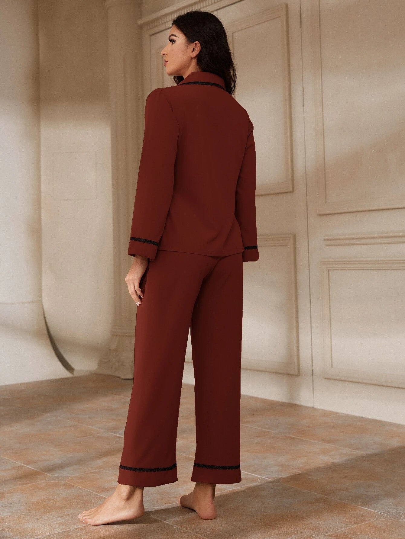 Lace Trim Pocket Front PJ Set / Pajama Set