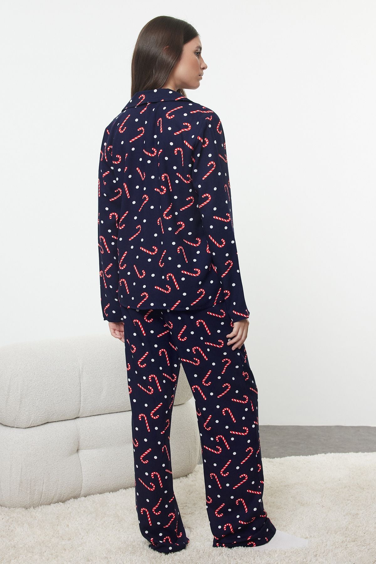 Inform when this item available New Year's Themed Navy Viscose Pajamas Set