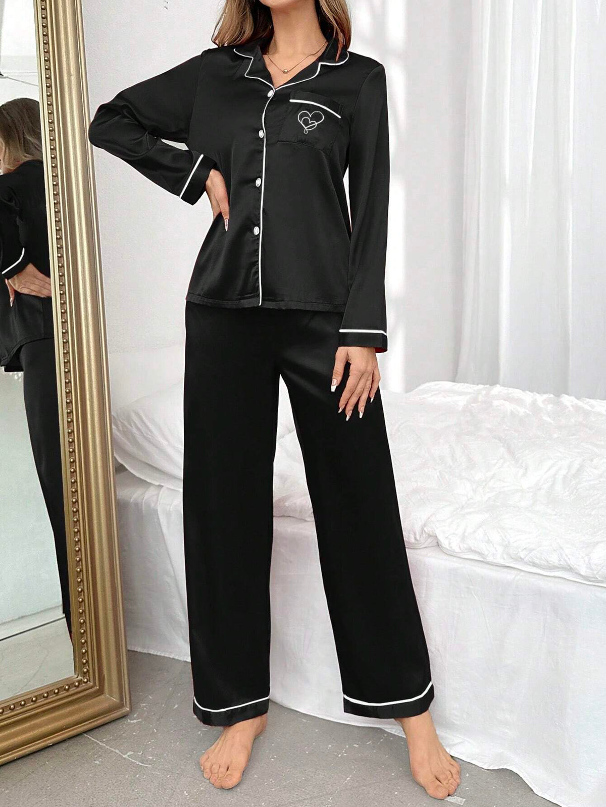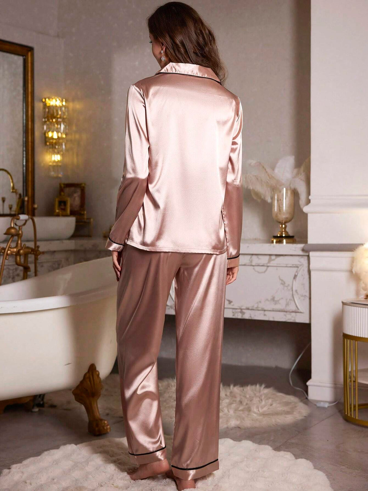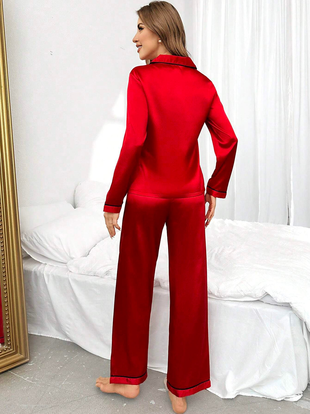 Women's Contrast Color Edged Collar Button-Front Pajamas Set