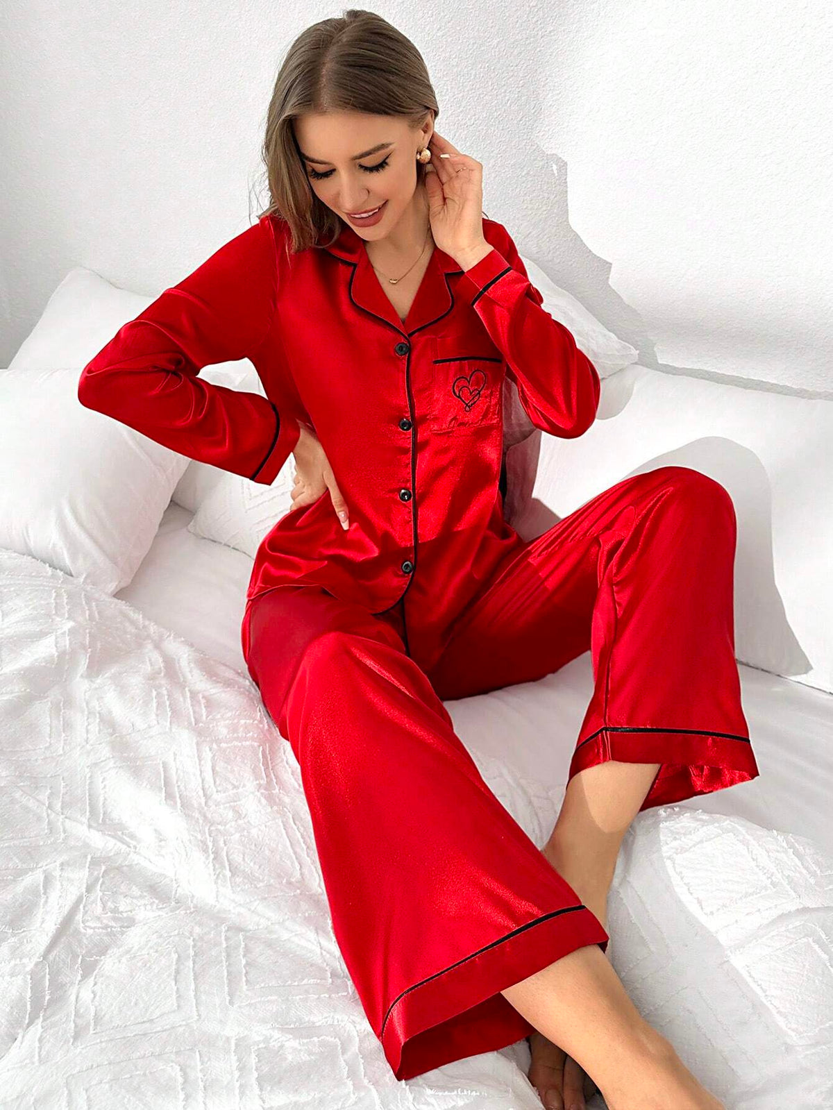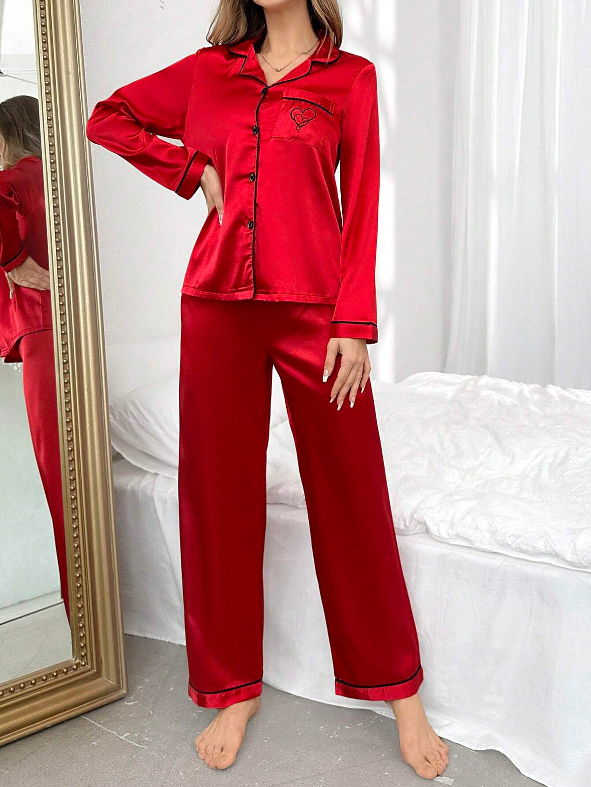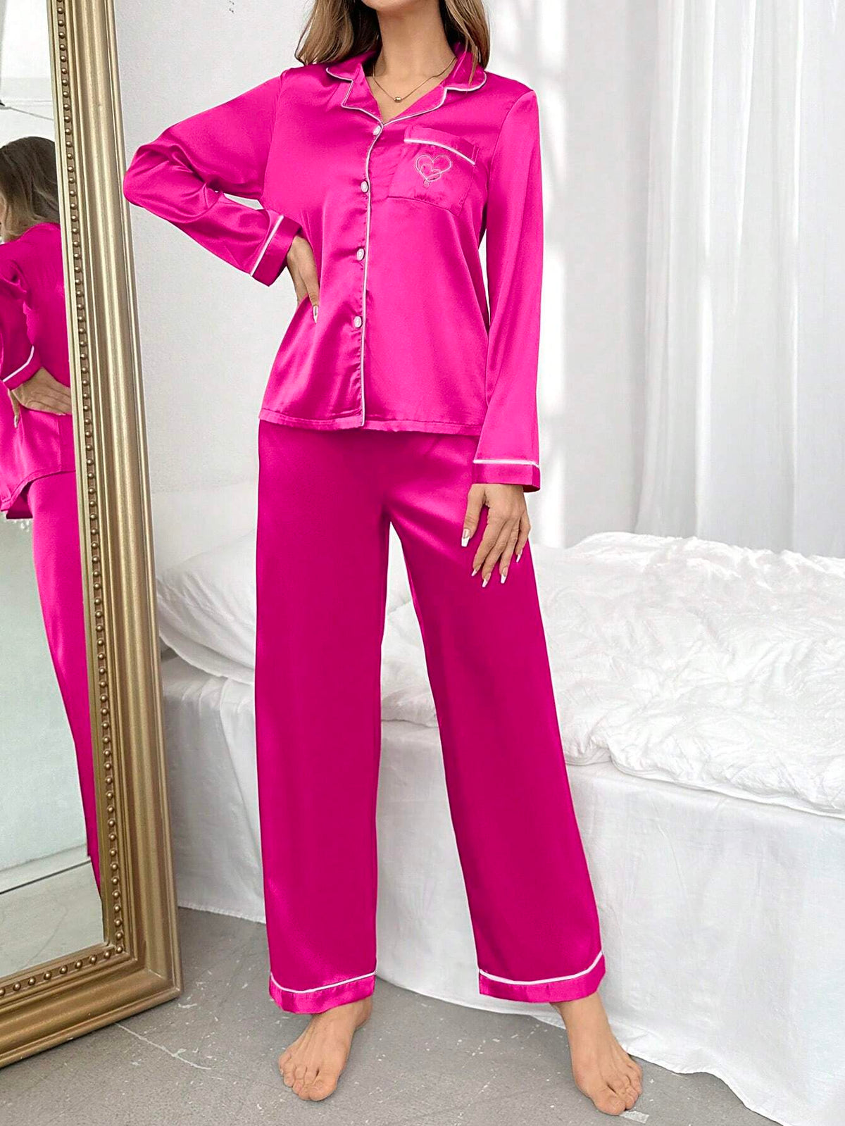 Women's Contrast Color Edged Collar Button-Front Pajamas Set