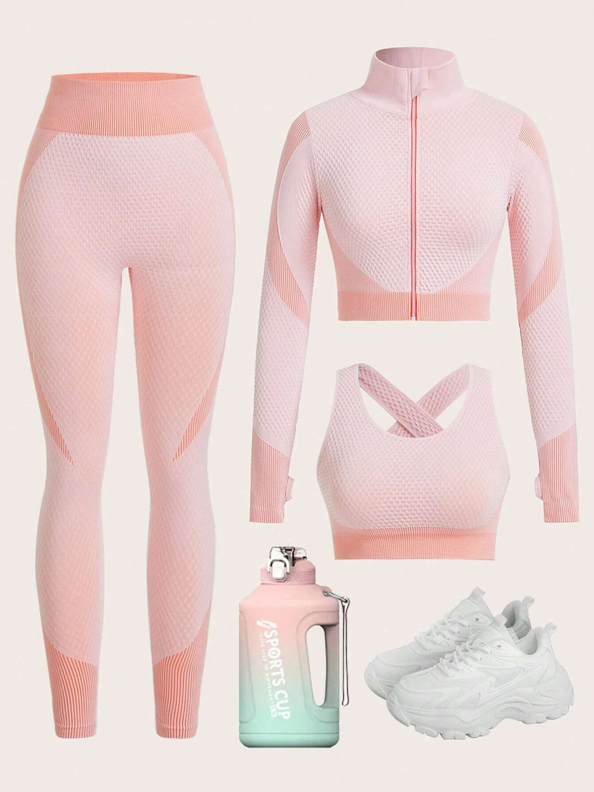 Inform when this item available Yoga Futuristic Seamless High Stretch Thumbholes Sports Jacket & Sports Bra & Sports Leggings