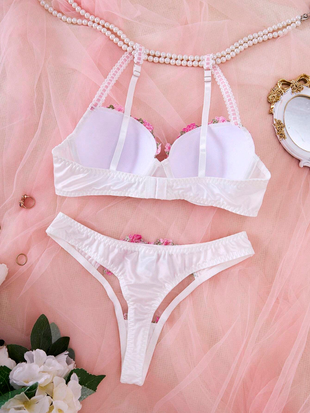 Details: EmbroideryStyle: Romantic-FrenchBra Type: OtherPattern Type: PlantsPanty Type: ThongsRise: Low RiseFabric: Slight StretchTops Material: Fabric