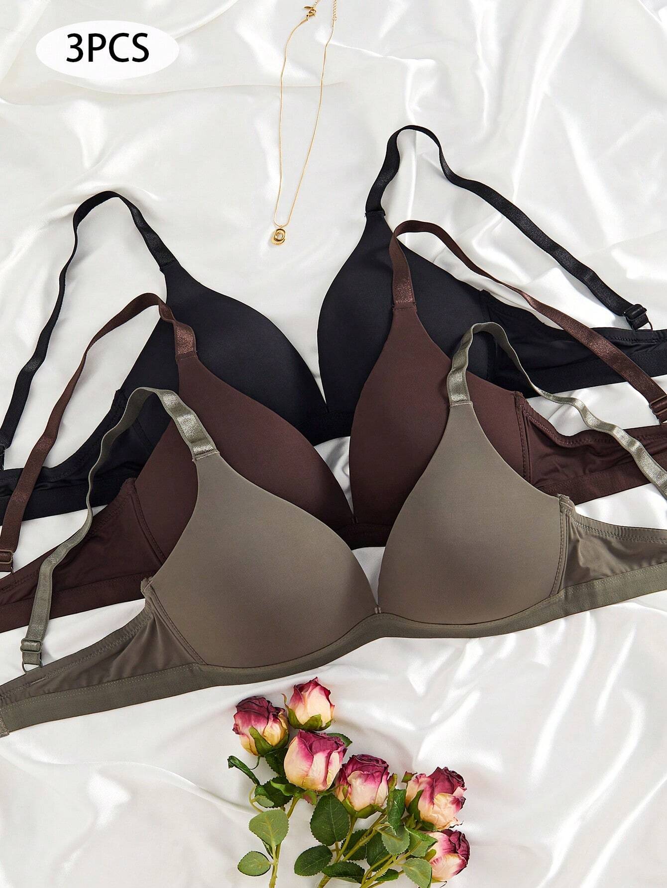 Inform when this item available 3PCS V-Style Lady's Comfortable Wireless Soft Cup Solid Bra